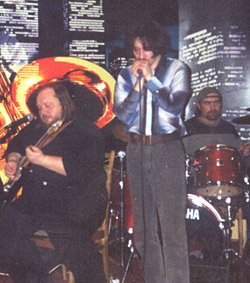 А потом сложилось так, что я на Арбате познакомился с нашим первым гитаристом Евгением Ильницким. Он играл, и сейчас играет в манере Jeremy Spenser'а и Elmor James'a на гитаре. Изначально наш коллектив был квартетом, в общем то, он и потом всегда был квартетом, только иногда клавишника привлекали.