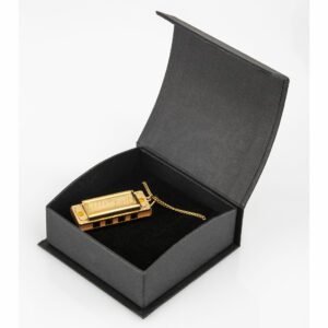 - Язычковые пластины и крышки покрыты золотом, а к гармошке прикреплена к 14-каратная позолоченная цепочка