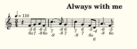 Синтаксис рассмотрим на отрывке уже готовой мелодии: