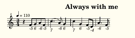 Синтаксис рассмотрим на отрывке уже готовой мелодии: