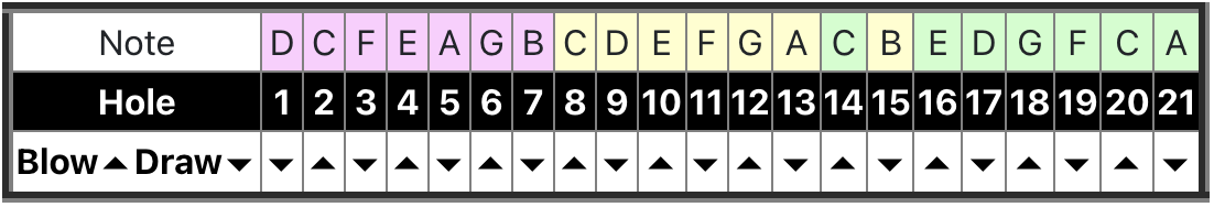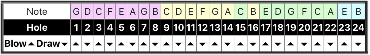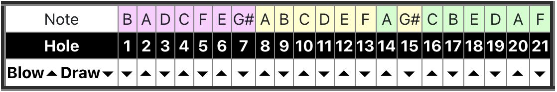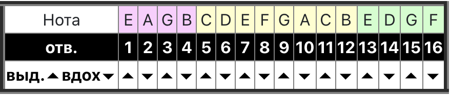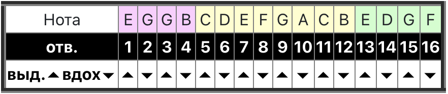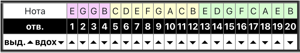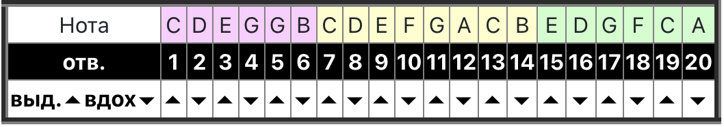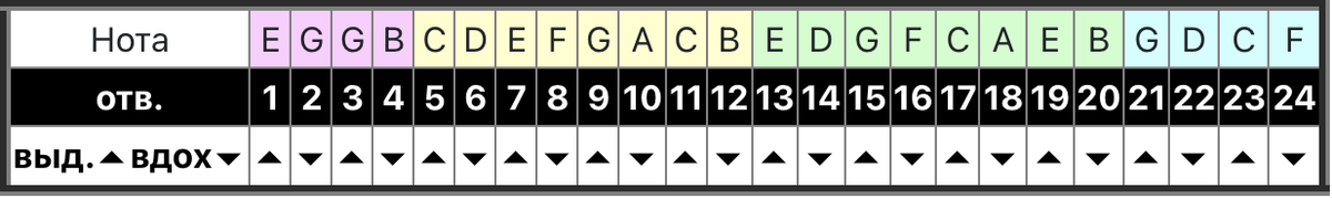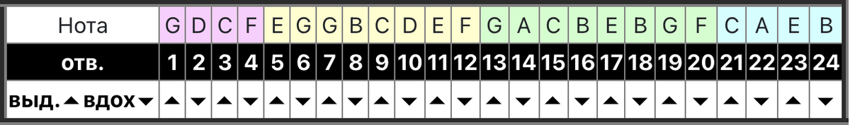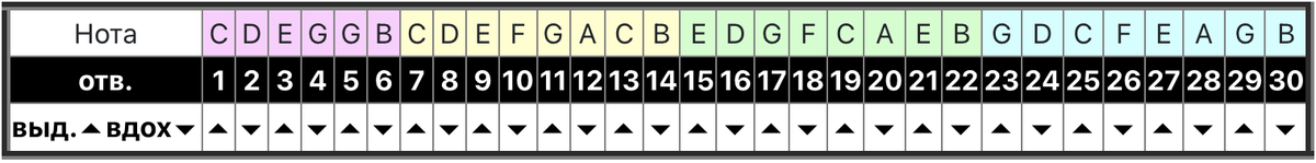 Нечётные отверстия играются выдох, чётные - на вдох.
