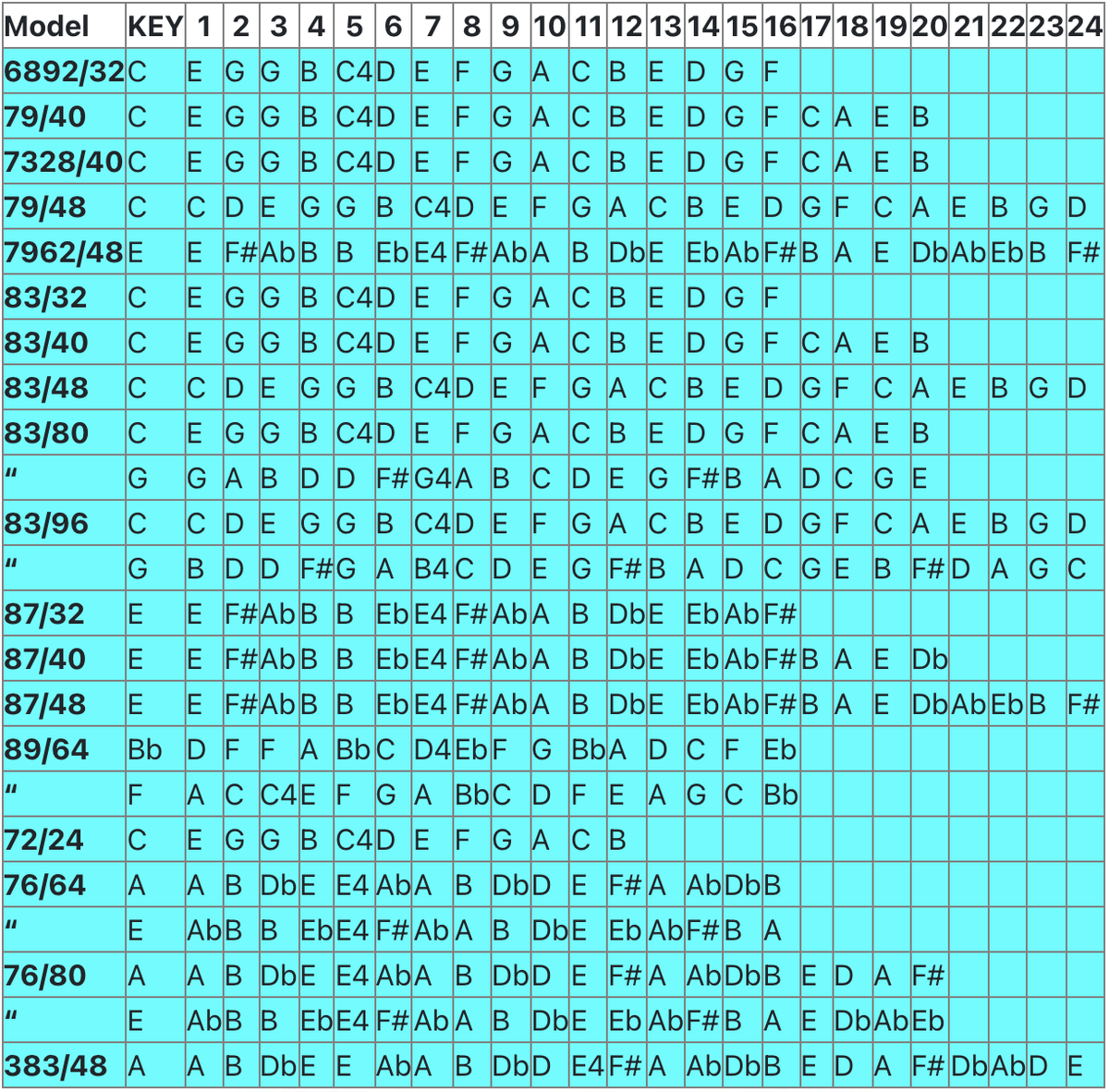 Для октавных моделей с 24 отверстиями последние 6 настроены как тремоло.