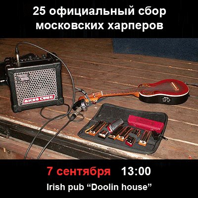 Приглашаем вас на традиционный, 25-й сбор московских губных гармонистов, который пройдет 7 сентября в ирландском пабе "Doolin house".