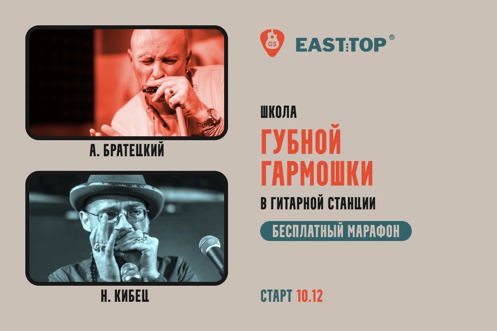 10 декабря стартует бесплатный марафон по игре на губной гармошке с преподавателями Александром Братецким и Николаем Кибецем. Место проведения: ГИТАРНАЯ СТАНЦИЯ // Магазин для гитаристов.