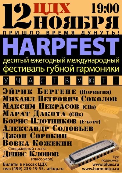 Десятый ежегодный международный Фестиваль Губной Гармоники пройдет 12 ноября в ЦДХ