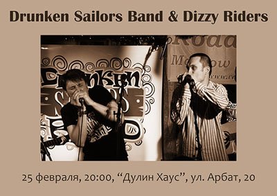 ОБНОВЛЕНИЕ: В связи с форс-мажорными непреодолимыми обстоятельствами, Dizzy Riders не смогут сегодня сыграть концерт!!! Мы будем играть одни, начнем где-то в полдевятого.