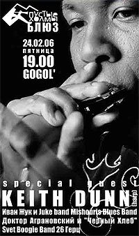 Гость фестиваля, гениальный бостонский певец, композитор и гармонист Keith Dunn, известный во всем мире как единственный блюзовый музыкант, записавший соло альбом с использованием только двух инструментов – голоса и губной гармошки, разошедшийся миллионными копиями по всему миру.