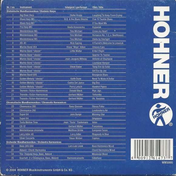 Hohner Harmonica Sounds Audio Demo-CD (2004 год)
