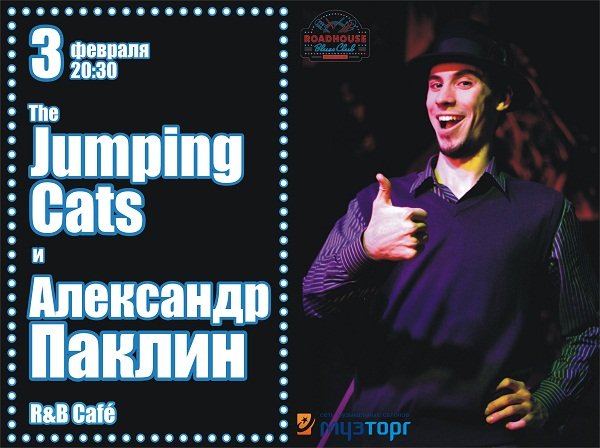 3 февраля, Александр Паклин и Jumping Cats представляют совместный блюзово-рок-н-ролльный концерт в Rhythm & Blues Cafe!
