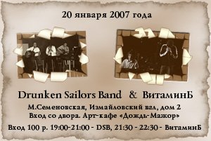 Приглашаем вас на совместный концерт групп "Drunken Sailors Band" & "ВитаминБ" в Арт-кафе "Дождь-Мажор".