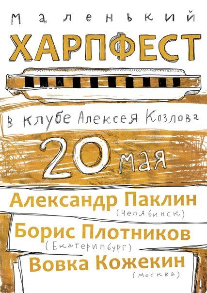 Один из таких мини-харпфестов пройдет в Клубе Алексея Козлова, в зале 2-го этажа, в среду 20 мая.