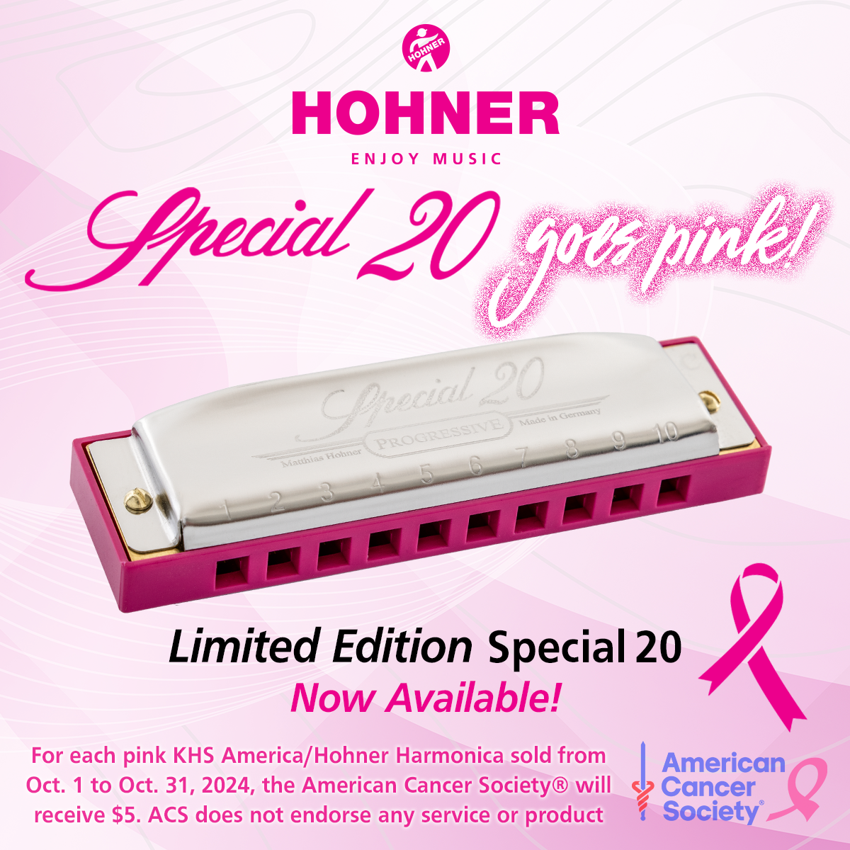 В поддержку Американского онкологического общества кампания Hohner выпустила лимитированную партию гармошек Hohner Special 20 с корпусом розового цвета.