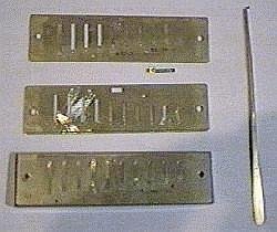 Вот фото того, что у меня получилось. На них видно замененных язычка, на 4-м и 5-м слотах.Мой опыты восстановления: - 4th blow, C Hohner MS BluesHarp. ... Я заменил пластины (новые оказались более приятные, но обошлись мне в 12$ + налоги !! ) - 5th draw reed, A Hohner MS ProHarp ... Починил и почти не настраивал. - 5th draw reed, C Hohner MS Special 20 ... Починил. - 5th blow reed, A Hohner MS ProHarp ... Починил. - 4th draw reed, C Hohner MS Special 20 ... Починил. И много, много еще ... ;)