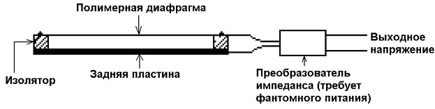 Рис. 3 принципиальная схема конденсаторного (электронного) микрофона