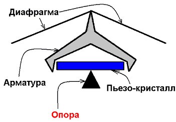 Важно отметить, что на чувствительный элемент пьезоэлектрического типа воздействует на только звуковая волна, но и вибрации, если конструкция позволяет прикрепить его к корпусу гармошки - в этом принципиальное отличие от динамического и конденсаторного.