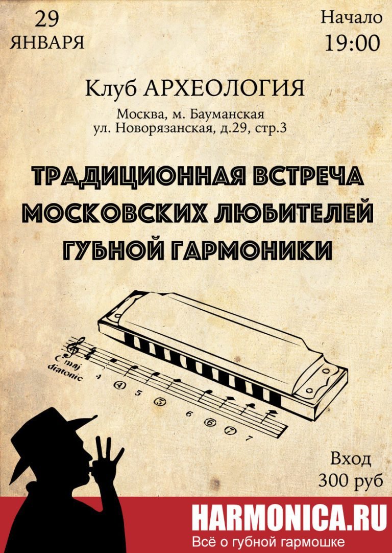 Приглашаем вас на встречу любителей губной гармоники, которая состоится 29 января в клубе "Археология".