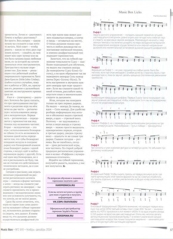 Cтарейший в России профессиональный музыкальный журнал Music Box опубликовал статью Влада Крыжановского о губной гармошке.
