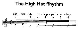 Хорошо, еще один классный ритм, корый мне нравится, я называю его «Ритм барабанных тарелок», потому что вы добавляете небольшой звук «Ш», похожий на звук барабанных таррелок. Звучит это так