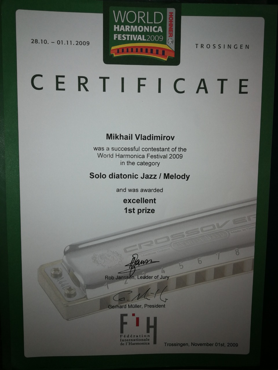 Сертификат международного фестиваля губной гармоники - здесь.